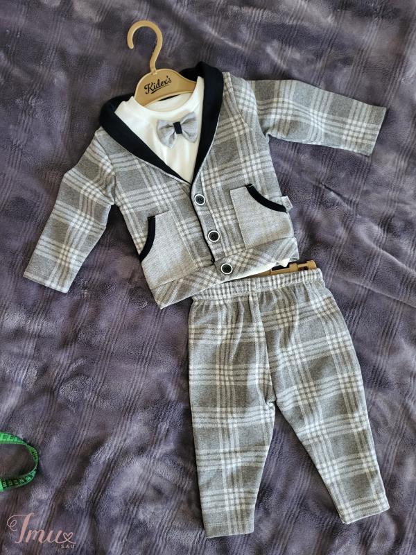 Naujas. 3 dalių komplektas, kuri sudaro: palaidinė su varnėlė, megztinis (Švarko imitacija), kelnės Medvilnė.