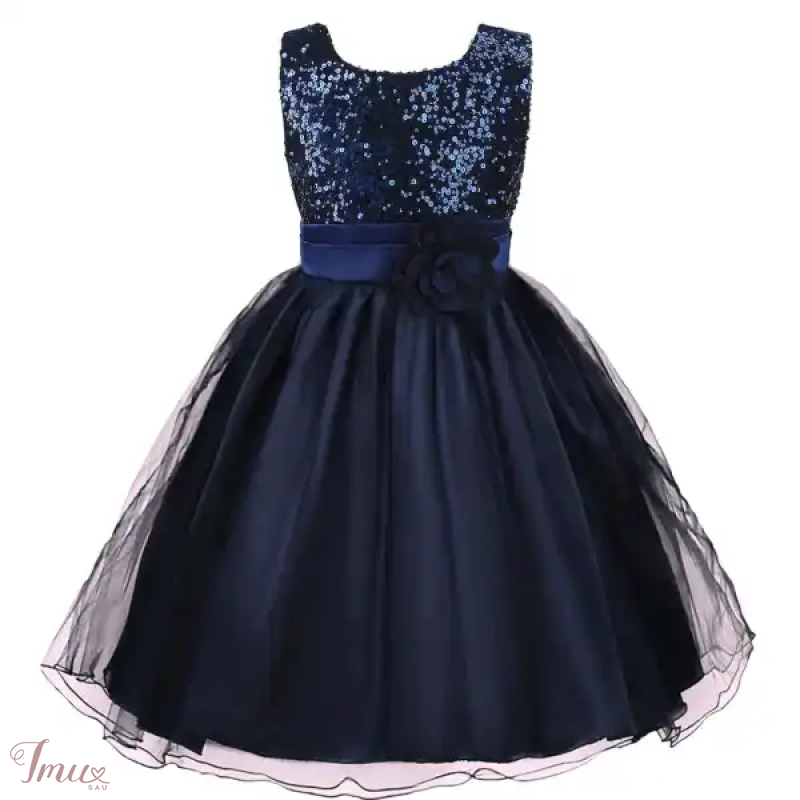 Šventinė tamsiai mėlynos spalvos suknelė mergaitei – elegantiškas pasirinkimas ypatingoms progoms. Puošni ir dailiai pasiūta, ji suteiks mažajai damai pasakiško žavesio. Daugiau informacijos: Išmatavimai: ilgis 64 cm., liemuo 30 cm., krūtinė 33 cm.; Spalva: tamsiai mėlyna; Turi pasijonį, tad suknelė labai gražiai "krenta".