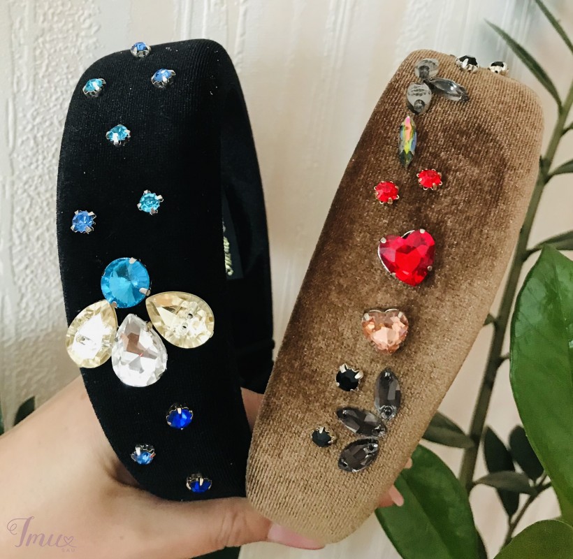 Pusti plauku lankeliai, dekoruoti akmenukais. Yra 4 vnt skirtingi