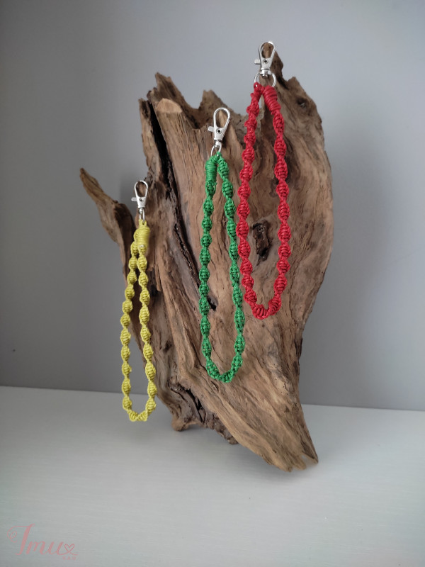 Labai mielas rankų darbo pakabukas rištas "macrame" būdu 🙂 Puiki dovana sau, artimam, mylimam 🤗🙂 Pakabukus galime segti ne tik prie raktų, bet ir papuošti rankinę ar kuprinę 🙂🤗 Pakabukų ilgiai: 16 cm Kaip matote ilgis toks jog užsideda ant riešo 🙂🤗 Labai patogu 🤗 Pakabukai pagaminti iš sidabro spalvos užsegimo spalvotų virvių 🙂 Kaina: 5 Eur + siuntimas Priimu individualius užsakymus: http://www.vihobby.lt/kontaktai Telefonu: +3706 0201417; El. paštu: vitule.p@gmail.com Asmenine žinute