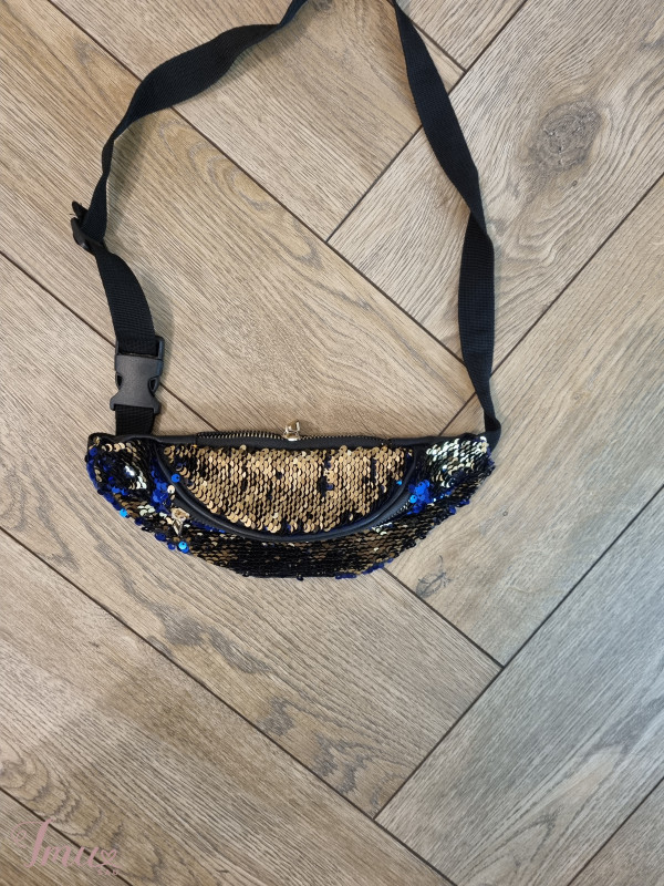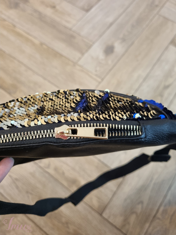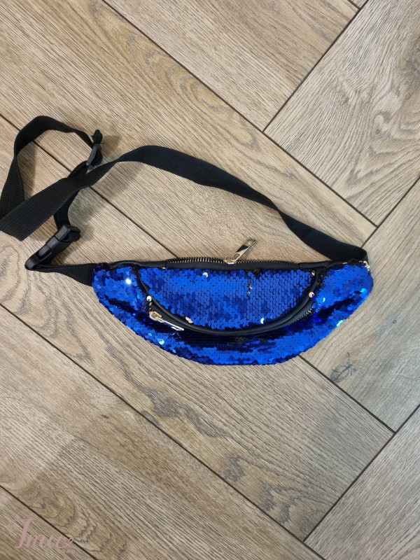 Geros būklės, yra tik kelis kartus dėvėta. Jos viršuje yra kyšenėlė, smulkiems daiktelems susidėti. Rankinės išorę puošia žvyneliai, todėl iš mėlynos, ją galima paversti aukso spalvos. Šio tipo rankines galima nešioti ant pilvo arba per petį. Ši rankinė taip pat tinka ir vaikams nes yra universalaus dydžio. :)
