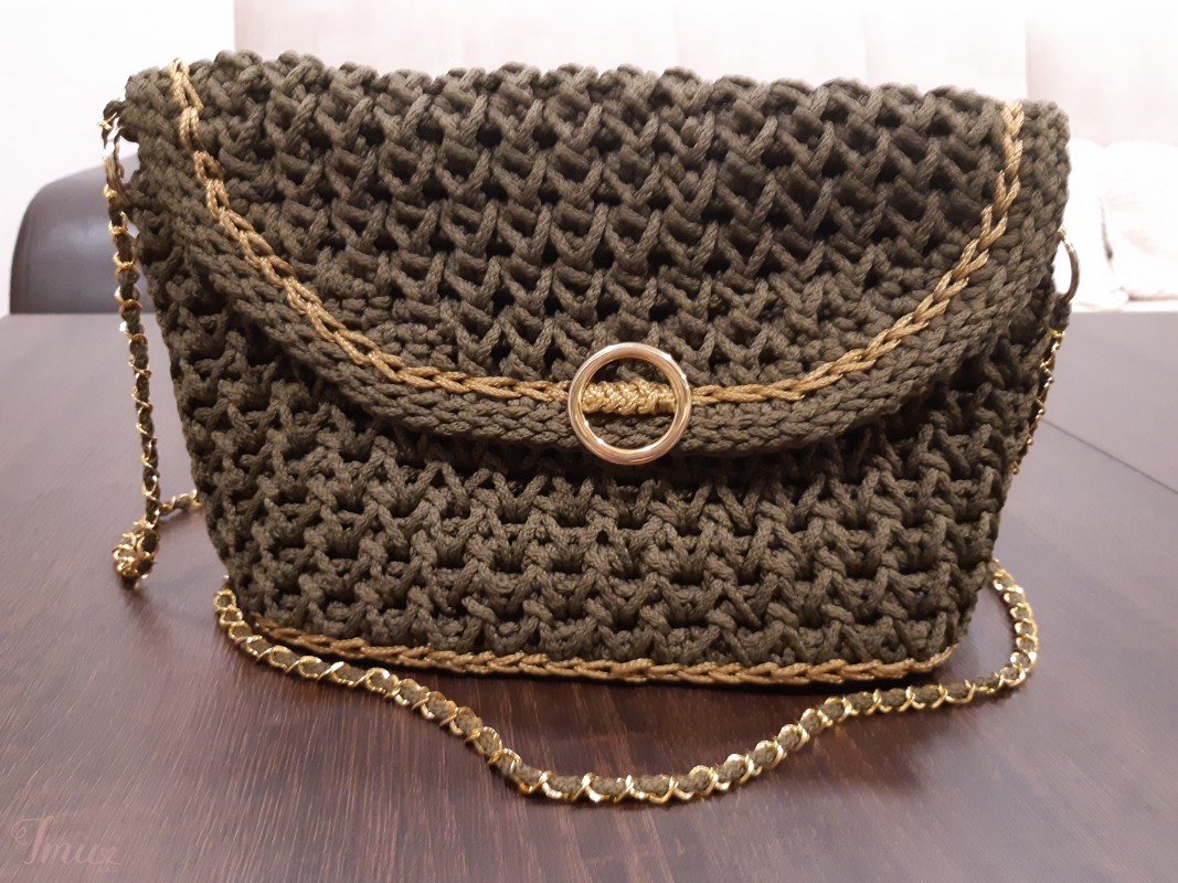 Vienetinė rankų darbo iš 3mm virvelės, puošta geltono metalo detalėmis