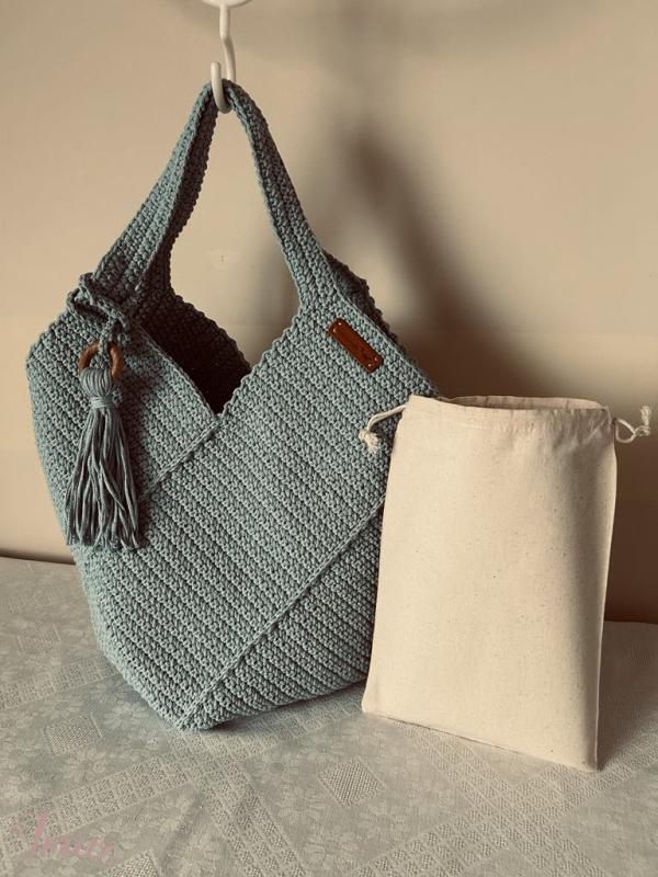 Universalios, stilingos ir talpios nertos rankinės iš virvių Sudėtis: 80% medvilnė, 20% polisteris Apytiksliai išmatavimai:  aukštis 27cm, plotis 39cm Viduje yra užtraukiamas krepšelis daiktams.                                                        Galima skalbti skalbimo mašinoje