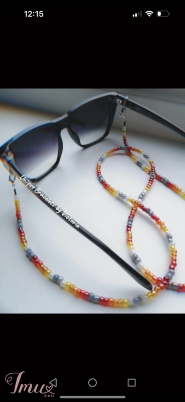 Rankų darbo akinių laikiklis /grandinėlė puikiai papuoš jūsų stiliaus įvaizdį .Laikiklio ilgis apie 70cm. Pridedu dovanėlę.