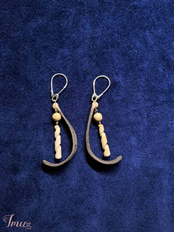 Vienetiniai rankų darbo auskarai. Auskarai yra pagaminti iš briedžio, ožkos rago. Auskarų užsegimai yra iš sidabro 925. Informacija el. paštu: jjdaubaras@gmail.com