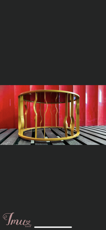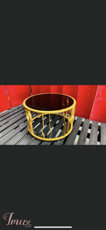 Kavos staliukas su tonuotu grūdintu stiklu,auksinės spalvos, užbaigtas milteliniu dažymu. išmatavimai: Aukštis 45cm Skersmuo 75cm Pristatymas visoje Lietuvoje!
