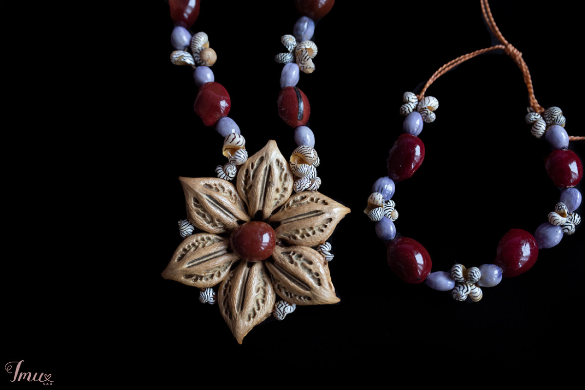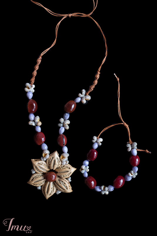 Rankų darbo kaklo ir rankų papuošalas padarytas is visokių kriauklyčių, ilgis reguliuojasi virvute. Pirktas šiltuose kraštuose bet taip ir liko nenešiotas.