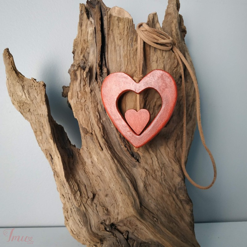 Ryškiai raudonas pakabukas "Širdis - širdyje" Dydis: 7cm Pagamintas: iš modelino. *Gali būti kitų spalvų, išmatavimų.