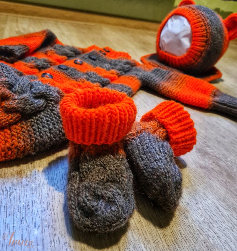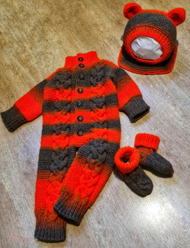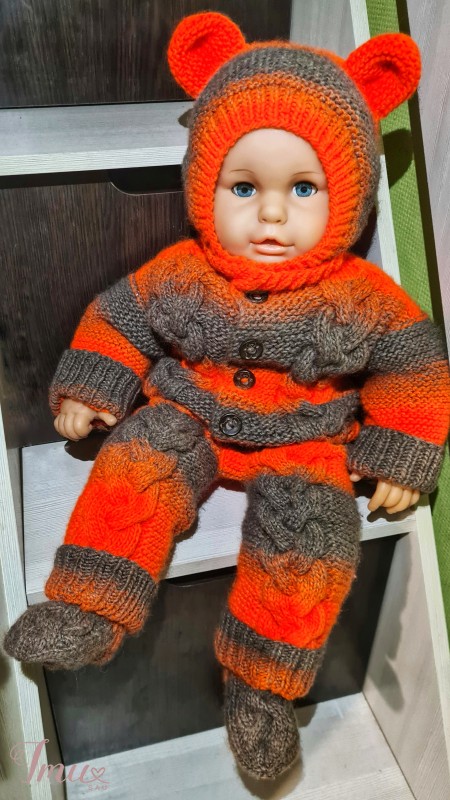 Merino pusvilnės komplektukas 6-9mėn. (68-74cm) dydžio, kurį sudaro kombinezonas, kepurė-šalmukas ir kojinytės. Priimami užsakymai pagal Jūsų pageidavimus.