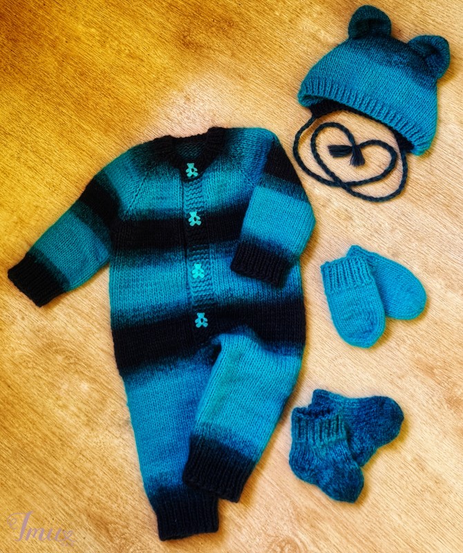 Merino pusvilnės komplektukas naujagimiui 0-3mėn. (56-62cm) dydžio, kurį sudaro romperiukas, kepurytė, kojinytės ir pirštinytės. Priimami užsakymai pagal Jūsų pageidavimus.