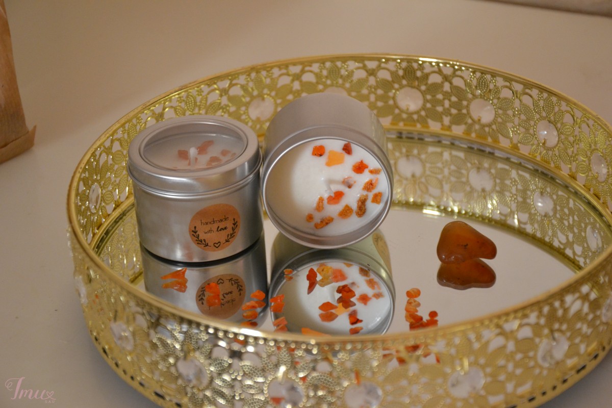 Rankų darbo rožių kvapo žvakė su indiškais karneolio mineralais. Natūralus sojų vaškas, karneolis, rožių žiedlapiai ir kvapusis rožių aliejus. Žvakės tūris 280ml.,medinis dagtis. 9 eu. Rankų darbo žibuoklių kvapo žvakė su natūraliais ametisto mineralais. Natūralus sojų vaškas, ametistas, rugiagėlių žiedlapiai ir kvapusis žibuoklių aliejus. Žvakės tūris 280ml.,medinis dagtis. 9 eu. Rankų darbo, medaus kvapo žvakė su indiškais karneolio mineralais. Natūralus sojų vaškas, karneolis, džiovintos apelsinų žievelės ir kvapusis medaus aliejus. Žvakės tūris 100ml. 5 eu.