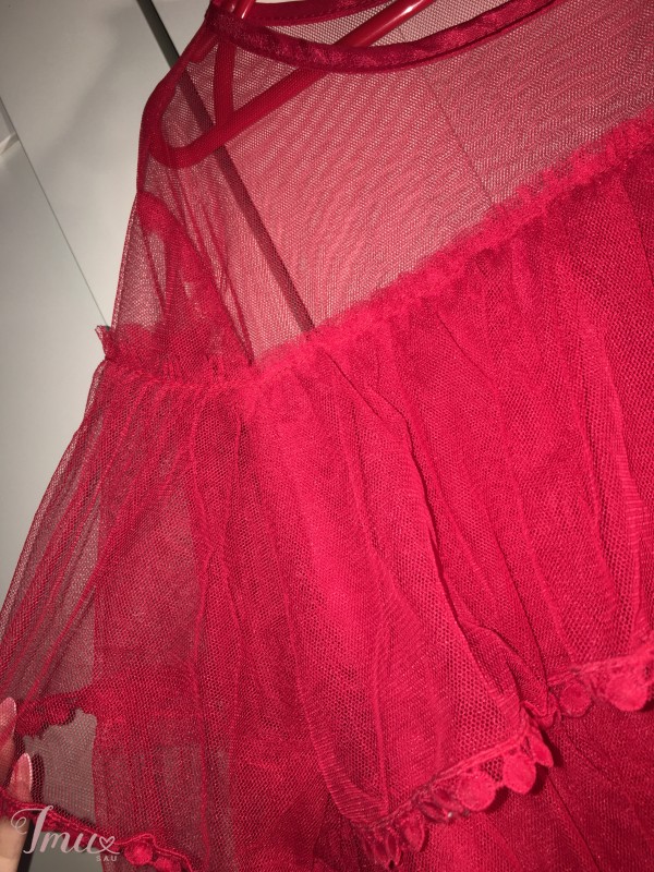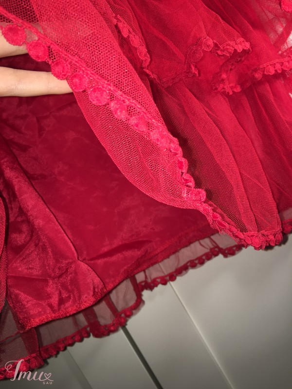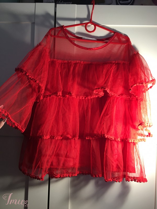 Karta vilkėta raudona palaidinė, po apačią turi pamušaliuką, todėl tikrai nepersišviečia.