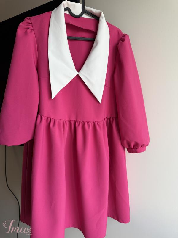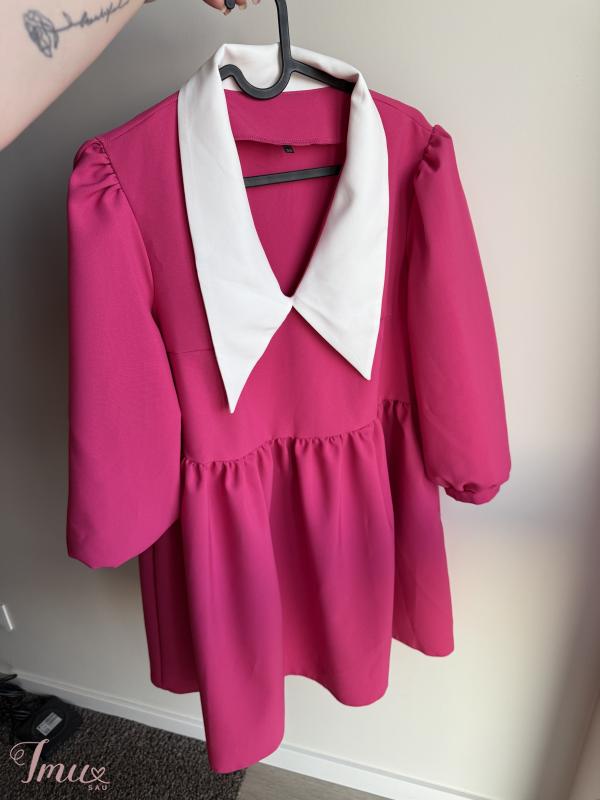 rožinė suknelė, balta apykakle. 38 dydis, bet puikiai tinka ir 40 dydžiui.