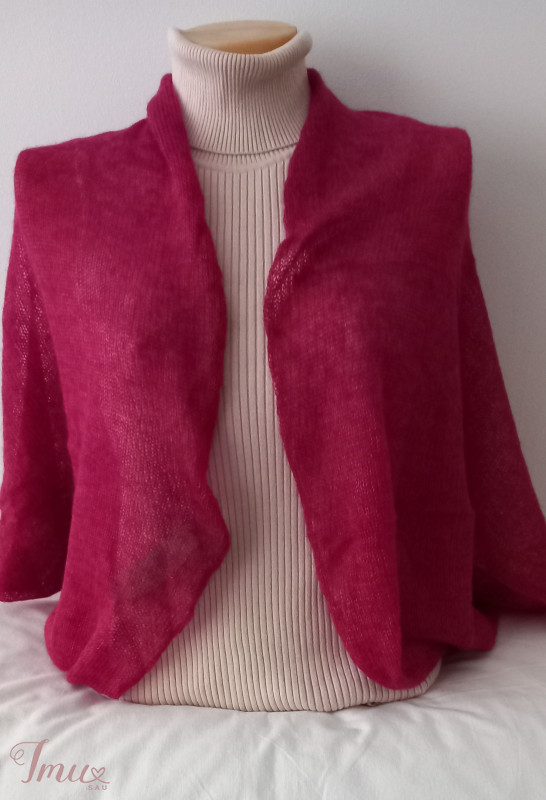Rožinis megztas mojerio užmestukas (kardiganas) be rankovių