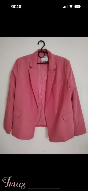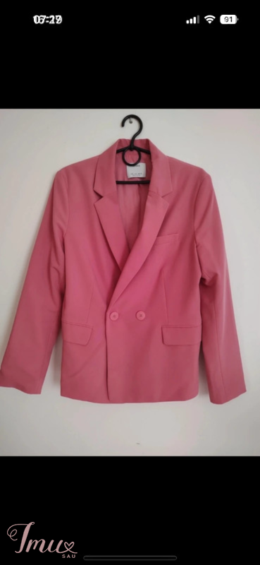 Labai gražus rožinis švarkelis. Pirkau per čia, bet nepataikiau su dydžiui. Ilgis 63, nuo pažasties iki pažasties 45. Rašo L dydį, bet sakyčiau Mažintas, daug geriau atrodys M