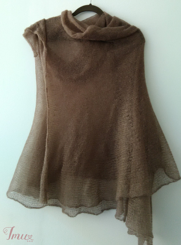 Tamsiai violetinė. Dydis: plotis ~ 70 cm, ilgis (dvigubas) ~ 100 cm. Sudėtis: 70 proc. - moheris, 30 proc. poliamidas