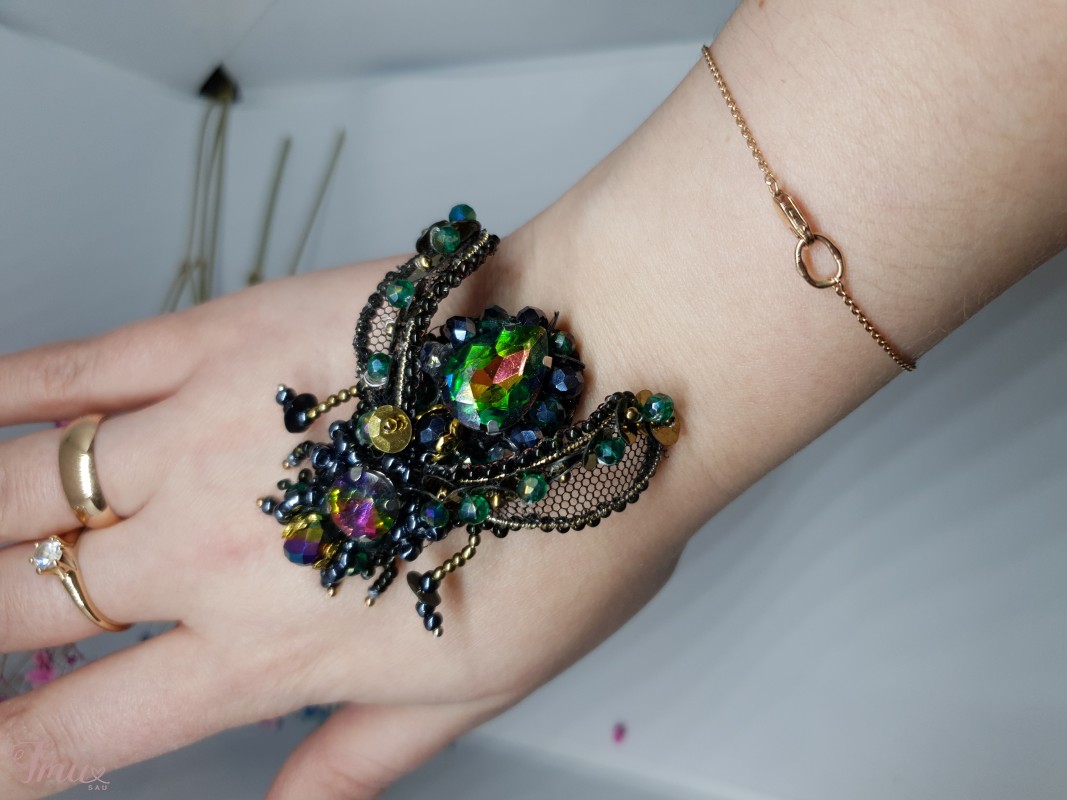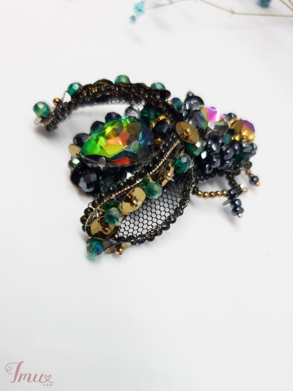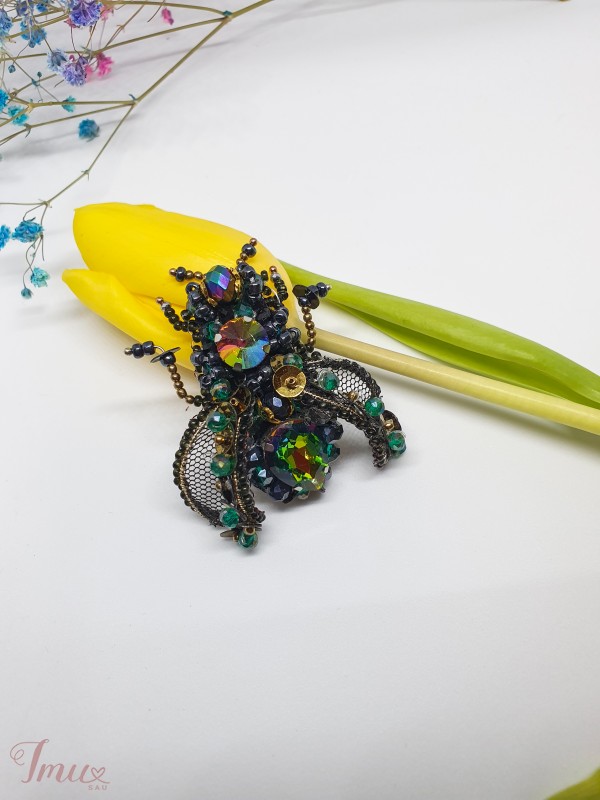 Sagė mūsė 3D. Su tinkliniais sparnais Sagė pagaminta iš kokybiško stiklo kristalų, čekiško biserio. Tinkliniai sparnai apdirbti biseriu. Galima pagaminti pageidaujamos spalvos.