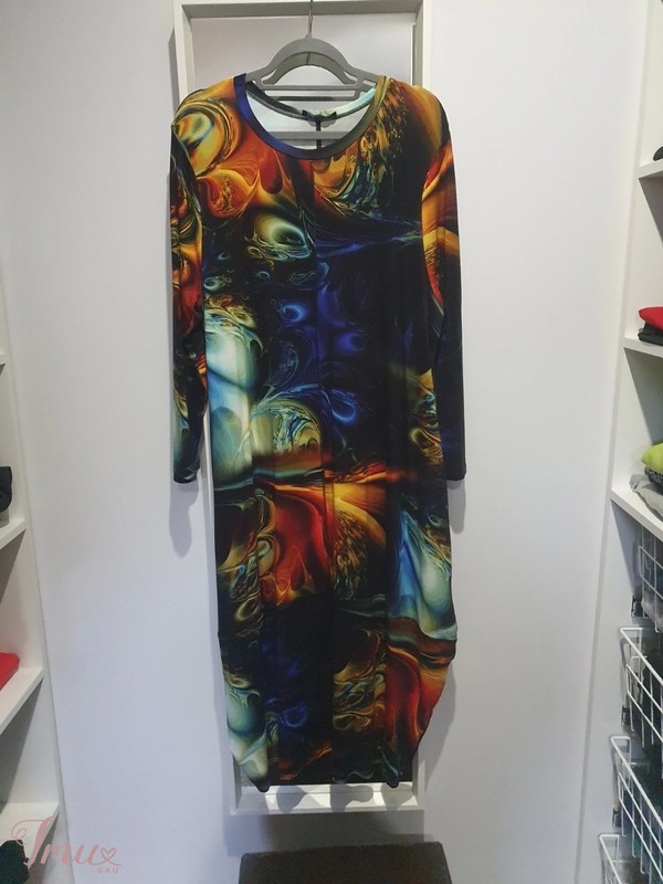 Sasha Ferrano suknelė universalaus dydžio. Išmatavimai ilgis 120, krūtinė 52, klubai 64, medžiaga tampri.