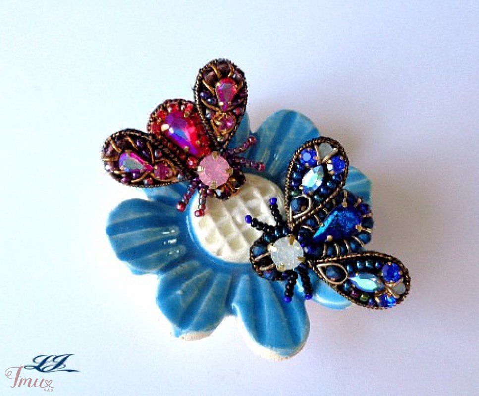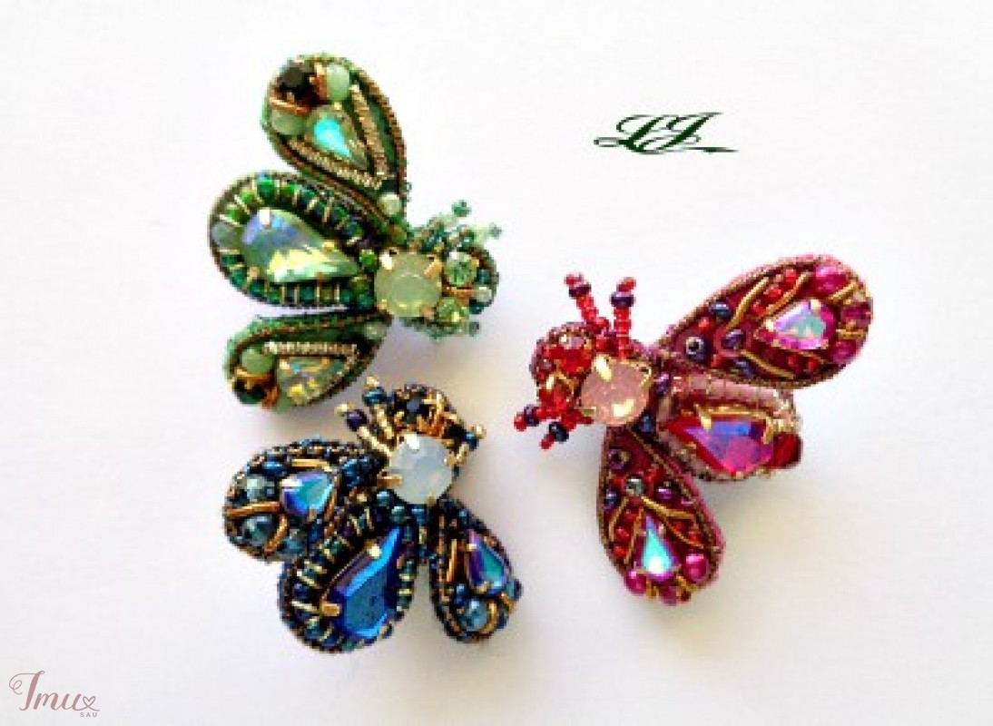 Brooch fly. Siuvinėta segė, 3D. Sparnelių padėtį galima reguliuoti. Biseris, įvairūs kristalai, kanitelė. Dydis vos 2,5 cm., lengvutė. Yra įvairių spalvų.