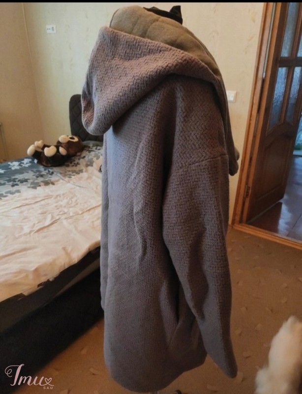 Pirkau nėštumui, kad pilvas tilptų 👀 niekur neradau pirkti didėjančiam pilvui, tai įsigijau per vintedą. Paltas puikiai tinka tiek rudeniui, tiek žiemai. Su vilna. Rankų darbo siūtas pagal užsakymą. Užsidėjus buvau tik kartą, nes daugiau nebebuvo kada lovos režime. Kaip naujas, labai geros kokybės. Viduje pamušalas, išorėje kaip nertas, megztas. Spalva pilka su violetiniu. Labai įdomi. Kišenės. Dydis tinka nuo M iki manau XL. Nėštukei super variantas ypač. Pirkau už 70 ar 60e. Bet sakau būklė super kaip ir kokybė :) tik nuotraukoje glamžuotas, nes ištrauktas iš maišo tik ką, prisiminiau, kad guli nuo nėštumo 👀