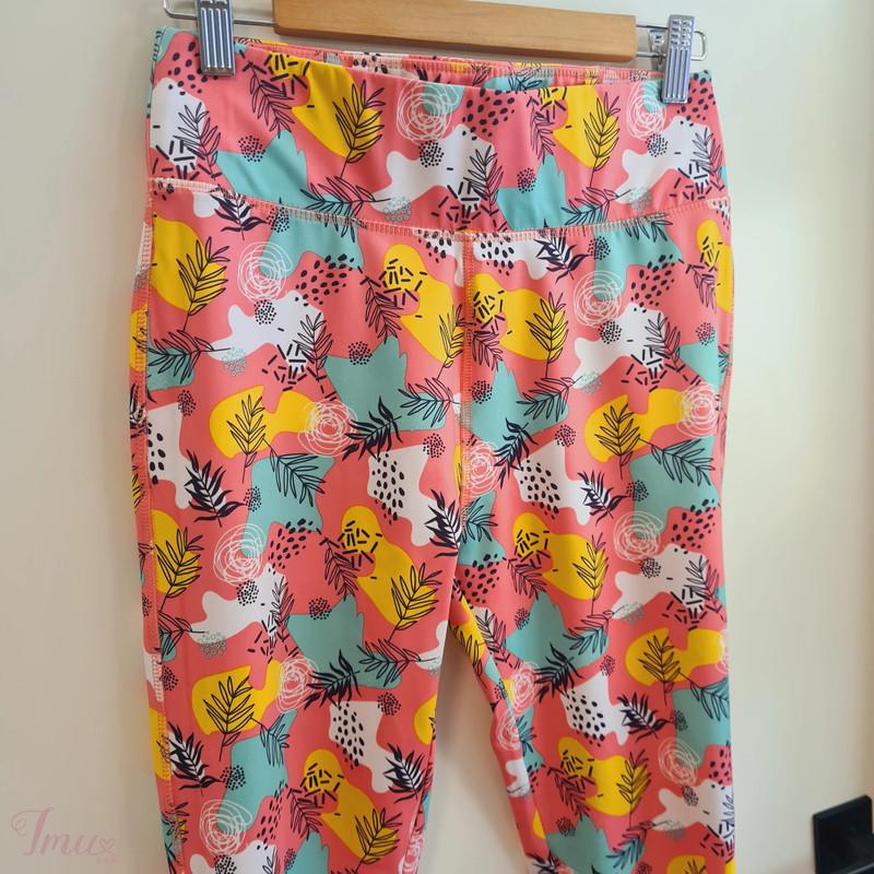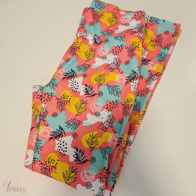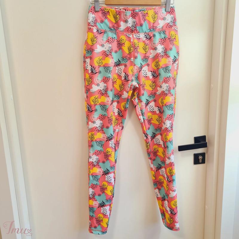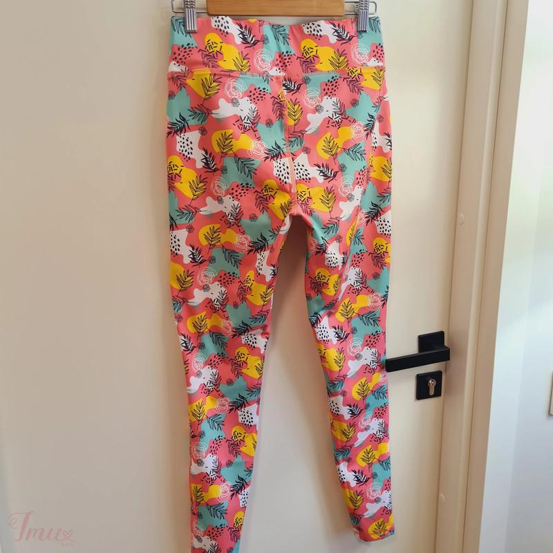 Spalvingos smagios sportinės tamprės. Kartą dėvėtos tamprės, kurios neturi jokių trūkumų, atrodo idealiai. S padidintas dydis. Liemens apimtis ~76cm, klubų apimtis ~100cm, klešnės ilgis (nuo klyno) ~67cm. Tiktų ir M dydžiui.
