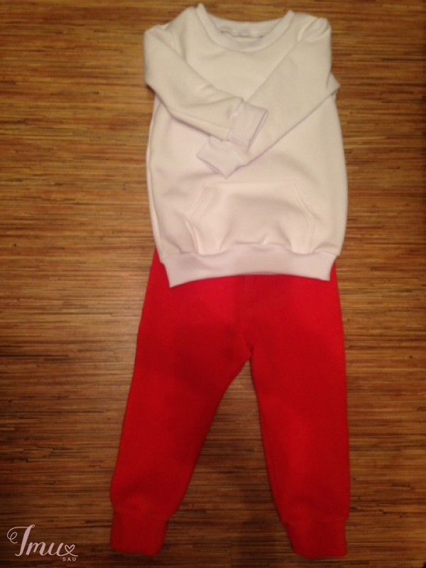 naujas, kokybiškai pasiūtas sportinis kostiumėlis: viršus baltas storas pūkis, kelnės koralinė frote su pūkiu. Šiltas ir mielas