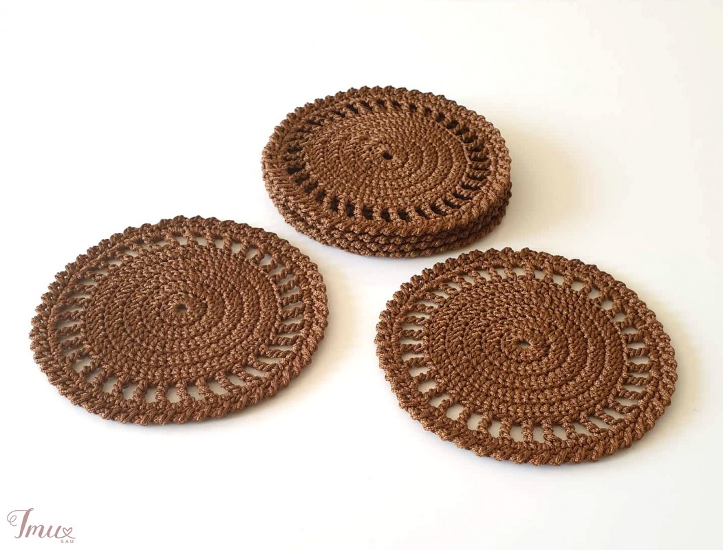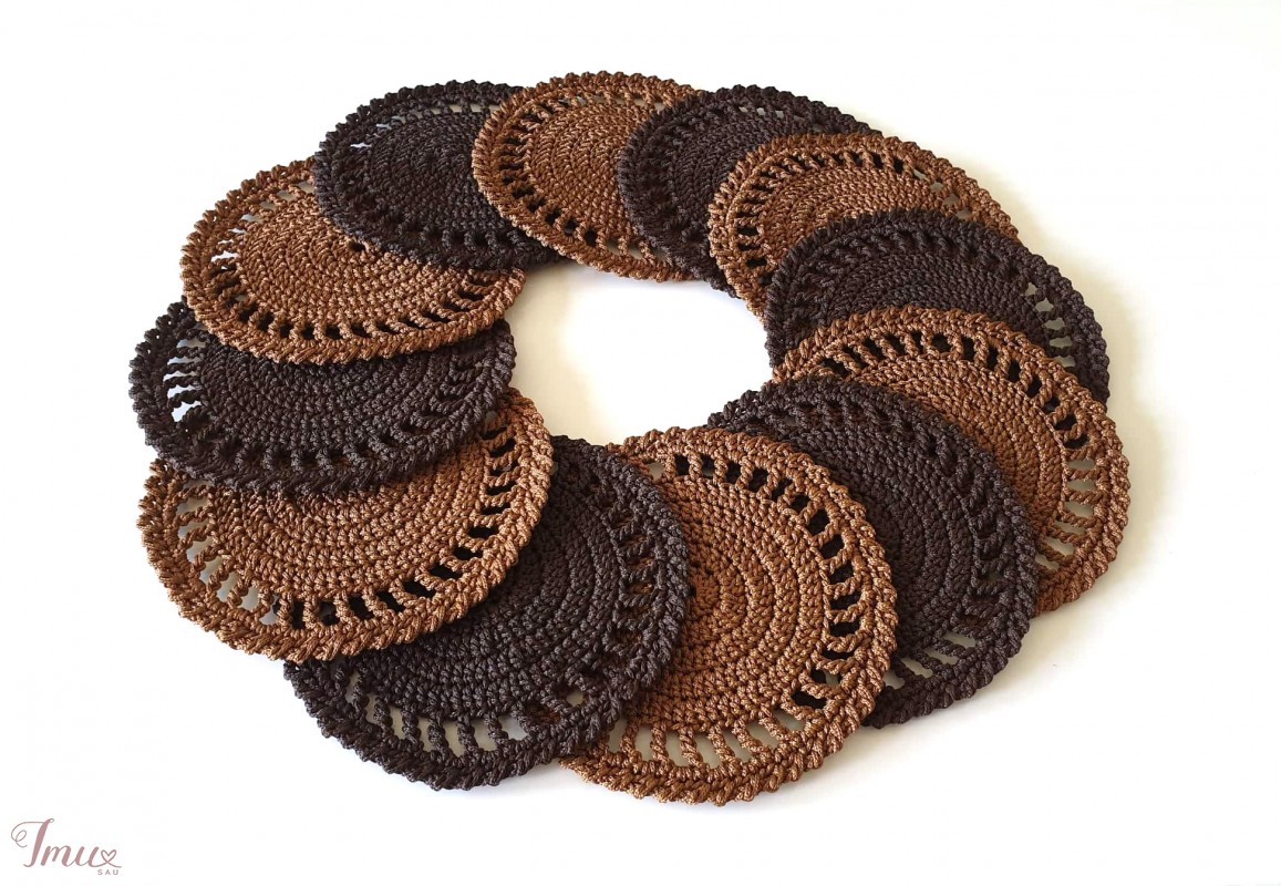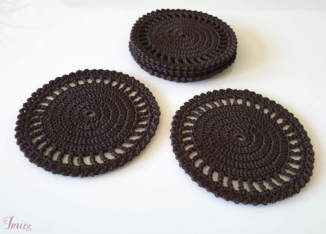 Nerti kavos (arbatos) padėkliukai namų jaukumui ir grožiui. Padėkliukų dydis ~17 cm Nerta iš poliesterio (100 %) virvelės.