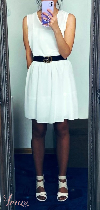 LP express, Omniva +2.50 €. Krūtinė - 90 cm (pasitempia iki 110 cm), liemuo (gumytė) - 60 cm (pasitempia iki 110 cm), ilgis - 93 cm. Diržas neparduodamas.