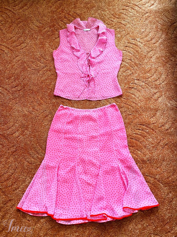 LP express, Omniva +2.50 €. Palaidinė: krūtinė - 100 cm, ilgis - 54 cm. Sijonas: liemuo - 80 cm, ilgis - 64 cm.