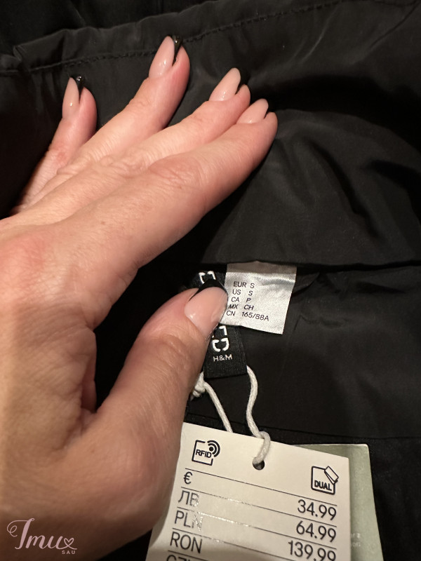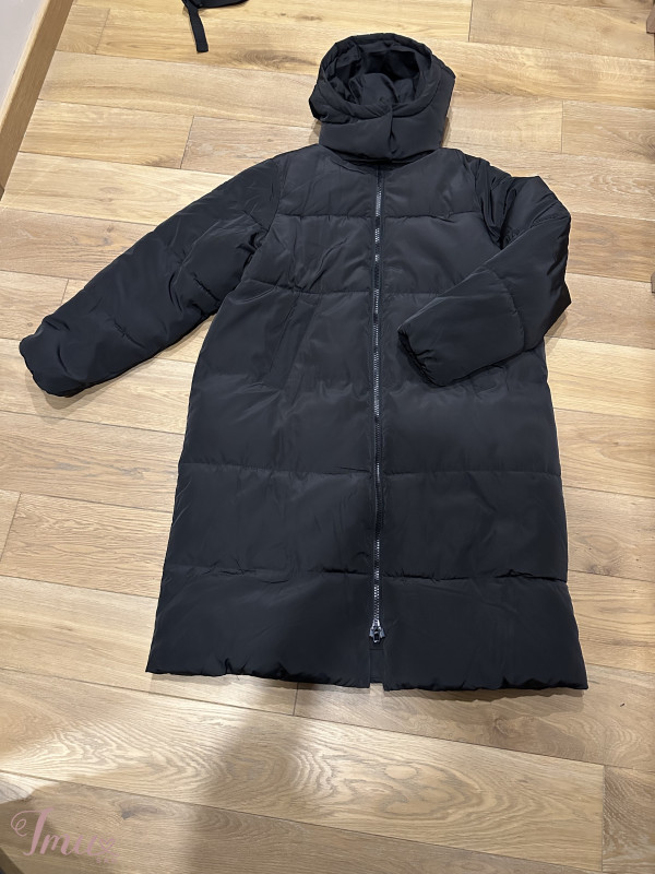 Nauja striukė su etiketėm, dydis S, manau labiau žiemai tinkama. Tarp pažastų 64x2cm, visas ilgis 108cm, rankovės ilgis nuo peties 63 cm. Su kapišonu nenusisega, yra kišenės.