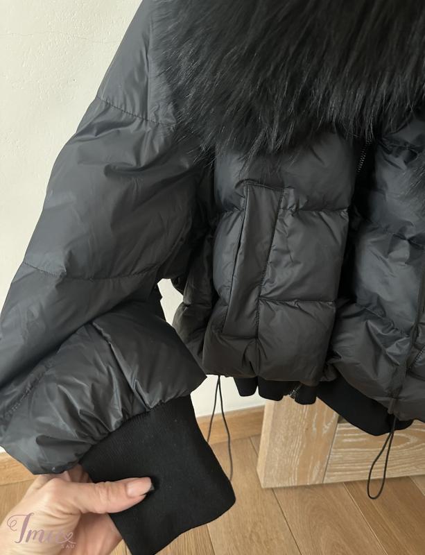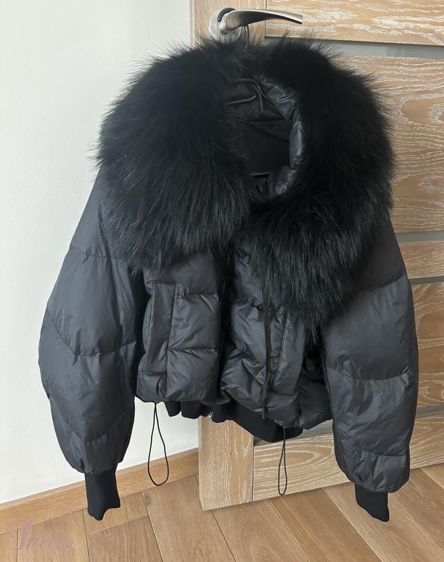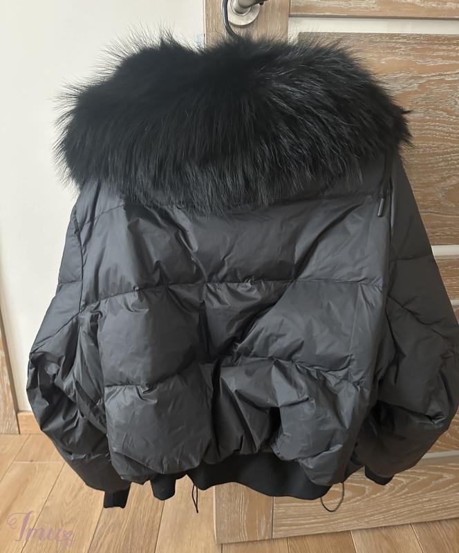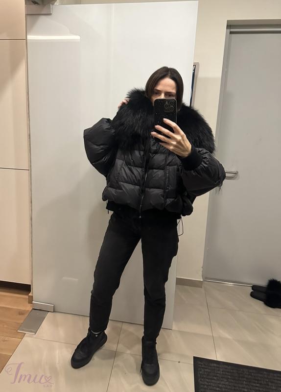 Universalaus dydžio pūkinė striukė su masyviu kailiu. Nauja su etiketėm. Mano ūgis 1,65, dėvimas dydis M.