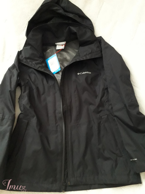 Nauja moteriška neperšlampanti, lengva, neperpučiama striukytė "Columbia", dydis - S, tačiau tinka nešiojančioms M dydį, audinys - poliesteris. Krūtinės apimtis - 94, liemens - 74, klubai - 96, ilgis - 65 cm. Pirkta "Hiatus" parduotuvėje, mokėjau 129 Eur, parduodu už 70 Eur.