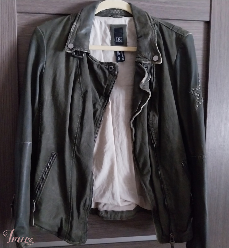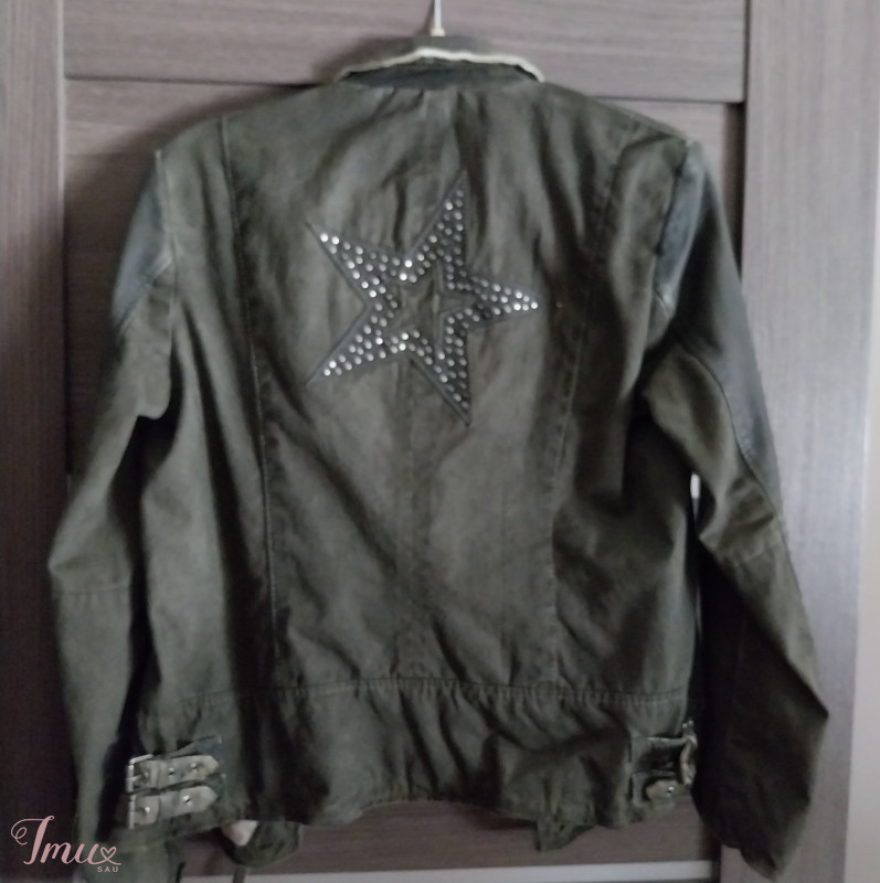 Originali striukė su odos-džinso elementais.