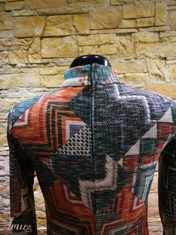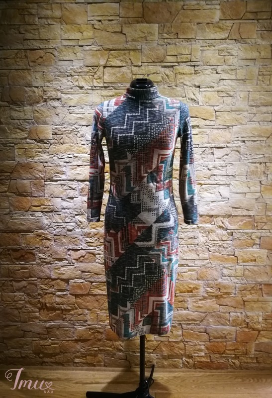 Individualiai siūta, mažai dėvėta tampraus audinio suknelė žemiau kelių su skeltuku pavasariui, rudeniui, žiemai.