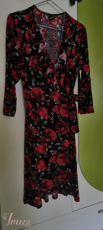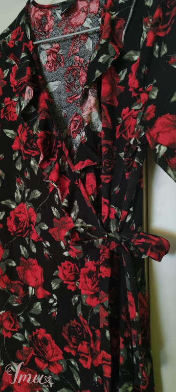 gina tricot suknele juoda su raudonom rožėm ties krūtine eina brindos dydis L