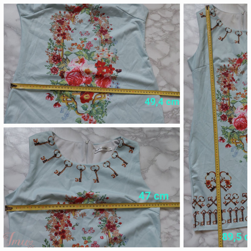 Puošni suknelė puikiai tinkanti įvairioms progoms. Dydis priklausomai nuo norimo laisvumo turėtų tikti nuo S ar M, bet reikėtų vadovautis išmatavimais pateiktais nuotraukose. Turi užtrauktuką nugaroje.