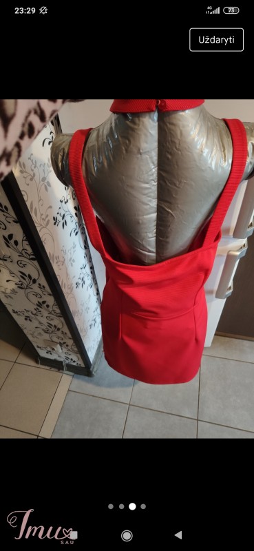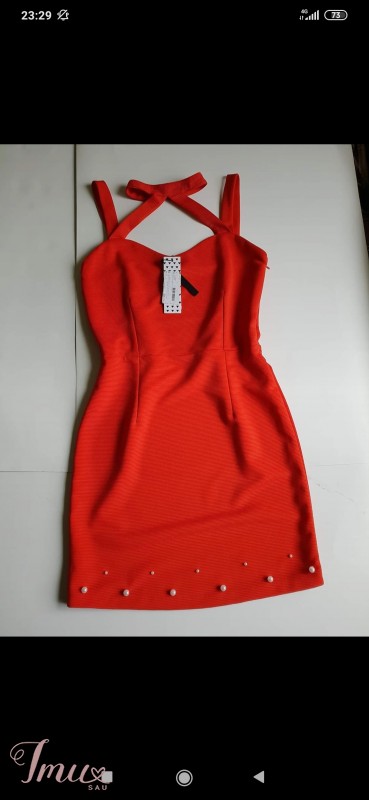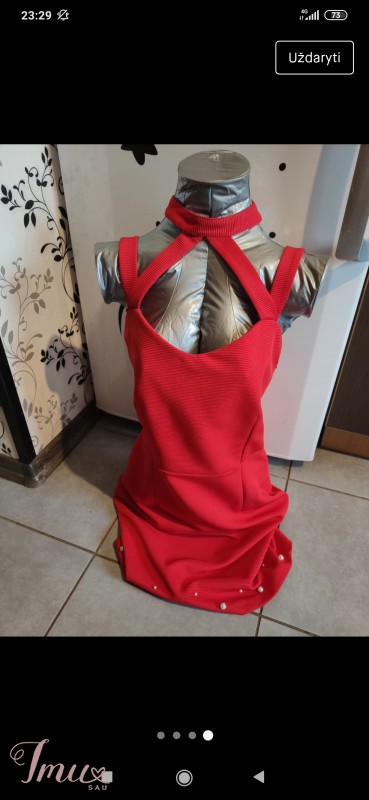 Suknute turi 4% elastano, tai siek tiek dar tamposi. Ismatavimus be tampymu. Bendras ilgis be paciu sleikuciu 75cm. Po pazastimis is vienos puses 41cm Krutine 41cm Juosmens sritis 39cm Klubai 43cm