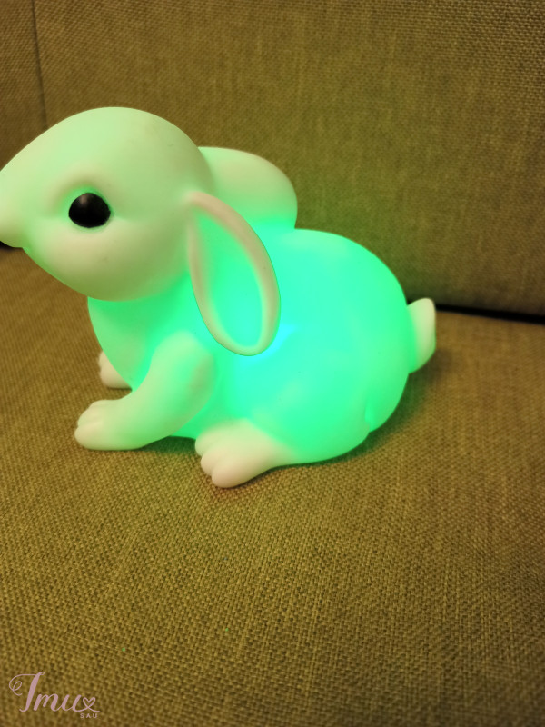 Labai geros būklės, mielas zuikis. Šviečia tamsoje. Šviečia įvairiomis spalvomis, labai patinka vaikams.