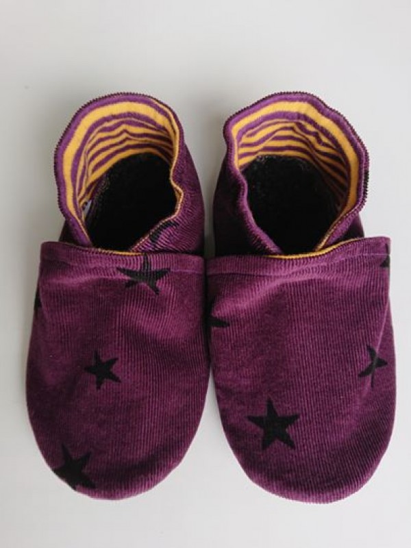 20 cm. Tinka 19-20 cm pėdutei. Rankų darbo siūti tapukai. Neslystantys, patogūs, lengvai apsiaunami. Aplink čiurną yra gumytė. Padas lengvas, lankstus - iš natūralios zomšos. Galima skalbti skalbimo mašinoje 30 laipsnių temperatūroje. Prekės Nr. 1215.