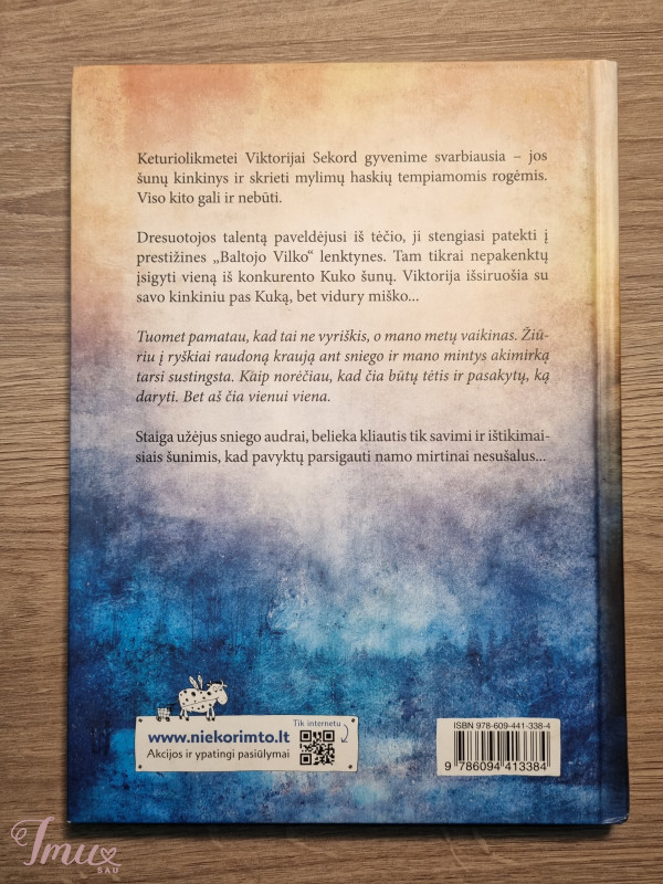 Puikios būklės. Knygoje „Ledo šunys" pasakojama apie keturolikmetę Viktoriją Sekord, kuriai gyvenime svarbiausia – jos šunų kinkinys ir skrieti mylimų haskių tempiamomis rogėmis. Viso kito gali ir nebūti. Dresuotojos talentą paveldėjusi iš tėčio, ji stengiasi patekti į prestižines „Baltojo Vilko“ lenktynes. Tam tikrai nepakenktų įsigyti vieną iš konkurento Kuko šunų. Viktorija išsiruošia su savo kinkiniu pas Kuką, bet vidury miško... Tuomet pamatau, kad tai ne vyriškis, o mano metų vaikinas. Žiūriu į ryškiai raudoną kraują ant sniego ir mano mintys akimirką tarsi sustingsta. Kaip norėčiau, kad čia būtų tėtis ir pasakytų, ką daryti. Bet aš čia vienui viena. Staiga užėjus sniego audrai, belieka kliautis tik savimi ir ištikimaisiais šunimis, kad pavyktų parsigauti namo mirtinai nesušalus... Tai išties įdomi knyga, kurią vertą paskaityti kiekvienam :).