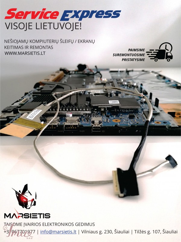 TOSHIBA Satellite P300, P300D, P305, P305D, P300-156, P305D8U-00M00C, Pro P300D-20D šleifas TOSHIBA nešiojamų kompiuterių ekranų kabeliai / šleifai. Pristatymas VISOJE LIETUVOJE per 1-2 d.d. per paštomatą, kurjerį, paštą. Renkantis šleifo modelį, galime operatyviai patarti ir išrinkti patys. Teiraukitės šiais kontaktais: Tel. +37063977277 El. paštas: info@marsietis.lt Vilniaus g. 230, Šiauliai / Tilžės g. 107, Šiauliai Jeigu patys nenorite / nemokate pakeisti šleifą, mes tai padarysime už jus, kokybiškai ir greitai, nes turime vietoje ASUS, TOSHIBA, DELL, SONY, MSI, APPLE, HP, FUJITSU, ACER, LENOVO matricos šleifų ir visą reikalingą įrangą. Keičiame ekranų kabelius visoje Lietuvoje. Galite atsiųsti mums savo kompiuterį, atnešti pas mus arba mes galime paimti iš namų per kurjerį. TOSHIBA Satellite P300, P300D, P305, P305D, P300-156, P305D8U-00M00C, Pro P300D-20D šleifas DD0BD3LC100, DD0BD3LC100 Kaina 19 eur TOSHIBA Satellite A300, A300D, A305, A300-201, A300D-15B, Pro A300-1HD, 6017B0147901, 0950001, 7400300 5019 204D3. TOSHIBA Satellite A300, A300D, A305, A300-201, A300D-15B, Pro A300-1HD (su WEB kameros jungtimi). DD0BL5LC000, 7400030 5019 204E3. TOSHIBA Satellite U845, U840-10R, U800, U840. DD0BY2LC020, 7400840 5019, 204A3. TOSHIBA Satellite C850, C850D, C855, C855D, L850, L850D (su WEB kameros jungtimi). 6017B0361601. TOSHIBA Satellite C50-B, C50-D, C50-A, C50D-B, C55, C55T-A5123, C55DT, C55T C55T-A, C55DT-A5307, C55DT-A5305, C55DT-A5106, C55-A5300, C55-A5302, C55T-D, C55-A, C55D-A, C55T-A, C55Dt-A, C55T-A5394, C55T-A5287. 6017B0440401, V000320390, V000321000, V000320930, 0950026, V000340170 V000321270. TOSHIBA Satellite L740, L745, L700, L700D L740D, L745-S4210, L45D. DD0TE5LC050, DD0TE5LC031. TOSHIBA Satellite P850, P855, P850-00E, P855-S5200, P855-300, P850-30R, P855-S5312. DC02001GY10. TOSHIBA Satellite A500, A500D, A505, A505-S6965, A505D, A505-S6965. 6017B0202001, 7400501 5019 204C3. TOSHIBA Satellite A500, A500D, A505, A505D, A505-S6005 A505-S6033, A505-S698. 6017B0201901, 7400505 5019, 204C3. TOSHIBA Satellite A500, A500D, A505, A505D, A600, A500-1EK, A500-1GL. DC02000UG00 TOSHIBA Satellite L630, L635, L735D-S3300, L735D-S3300, L735D, C630, L730D. 6017B0268701. TOSHIBA Satellite L500, L500D, L505, L505D, L500-1XM, L505-13J, L500-1RF. DC02000UC10. TOSHIBA Satellite 500, 505, NB500, NB505, NB505D, BB550, NB550D, NB520, NB505-N508BL, NB500-12P PBU00, NB500-12P. DC020016L10. TOSHIBA Satellite L550, L555, L550D, L555D, L555-S7945, L550-17M, L550-13U, L550D-11F, Pro L550-17P. DC02000S910. TOSHIBA Satellite A200, A205, A210, A215, A2105, A200-17O, A215-S5837, A200-22I, A210-287, A200-1VF. DC02000F900, K000046540 . TOSHIBA Satellite M800, M800D, M801, M805D, U400, U405, U405D. DD00BU2LC000, GLEDD0BU2L000091002. TOSHIBA Satellite P300, P300D, P305, P305D, P300-156, P305D8U-00M00C, Pro P300D-20D. DD0BD3LC100, DD0BD3LC100 TOSHIBA Satellite M300, M305, M300D, M305D, M331, M336, L310, L311 M323 L323 L332. DD0TE1LC000, DD0TE1LC100, DD0TE1LC000101104. TOSHIBA Satellite L510, L511, L515, L517, L521, L522, L532, L535, L551, L515D PG10M. 6017B0194701. TOSHIBA Satellite L300, L300D, L305, L305D, M300, M305D, M305, L300-29D, L300-1AC, L300-1AC, L300D-12L, L300-29D, L300-1AC, L300-1AC, L300-20Z, L300-29H, L300-19Y, L300-1FD, L300-1, L305-S5955, L300-10Q, L300-16F, L300-29H, L300-19Y, L300-1FD, L300-1AC, 6017B, L300D-11T. 6017B0146701. TOSHIBA Satellite L650, L650D, L655, L655D, L655D-S5095. DD0BL6LC010. TOSHIBA Satellite C660, C660D, C665, C665D, P750, P755, A665-S6086, C660-173, Pro C660-10K, P755-S5381. DC020011Z10 TOSHIBA Satellte L50-B, L55-B, S50-B S55-B, S55T-B, S55T, S55-B, L55-B5267 B915, S55T-B5271SM, S55T-B5282, S55T-B5335, S55T-B5382, S55T-B5383SM. S50-B-15U, L55T-B5271. DD0BLILC000, DD0BLILC010, DD0BLILC020, DD0BLILC030, A000294560 vaizdo, šleifas, ekrano kabelis, LVDS, screen cable, jungtis, vaizdas, juosta