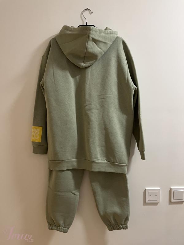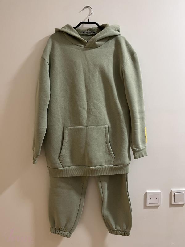 Labai geros būklės. Su pašiltinimu. Viršus S, bet oversize. Kelnės M dydžio. Pastelinės žalsvos spalvos. • Jei yra poreikis galiu atsiųsti išmatavimus ir foto ant žmogaus.