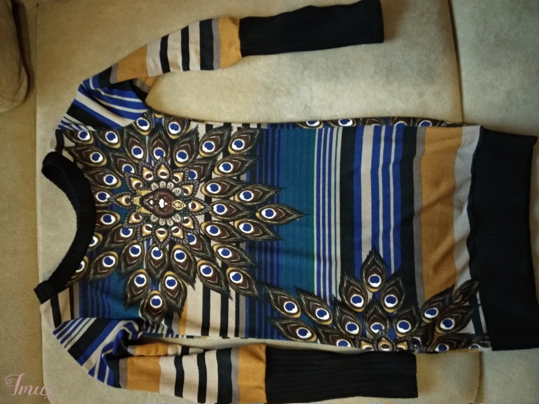 Nešiota mažai, visas ilgis 80cm, tarp pažastų 39cm, rankovių ilgis 63cm, medžiaga yra tampri, dydis tinka nuo S iki M, jei reikia siunčiu + siuntimo išlaidos.