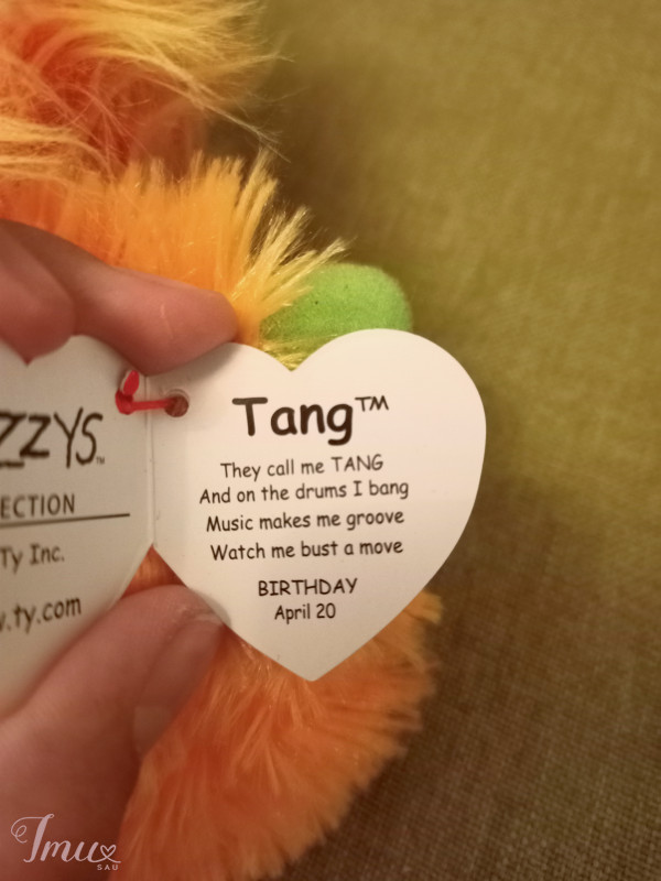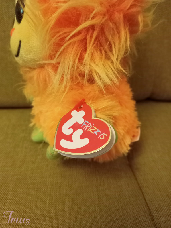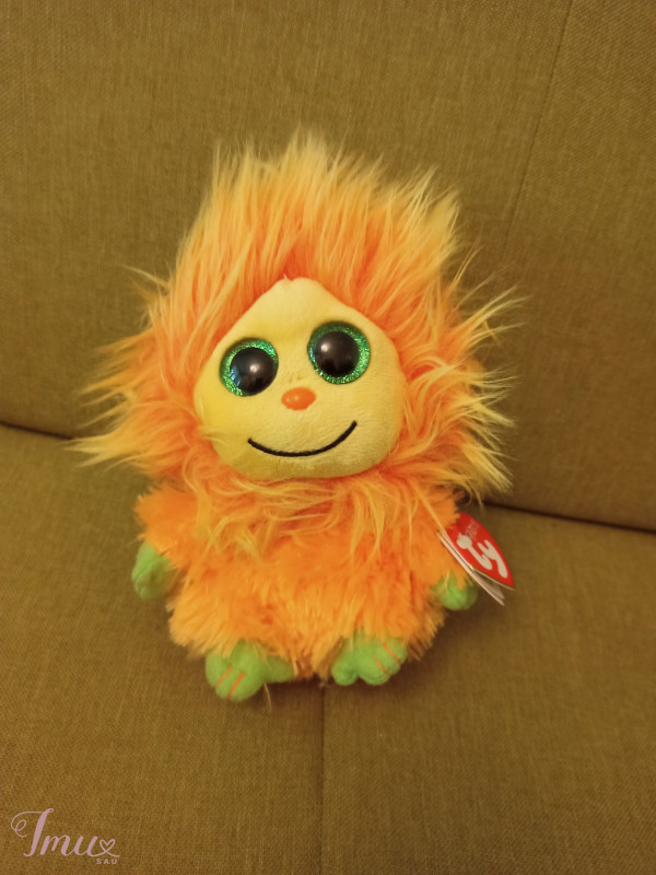 Labai geros būklės, beveik naujas, minkštas žaisliukas. Jo vardas yra Rangas. Jis yra oranžinės spalvos su žaliomis pėdutėmis. Turi labai gražias blizgančiais akis.