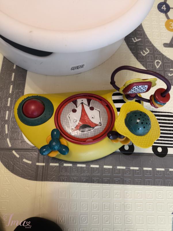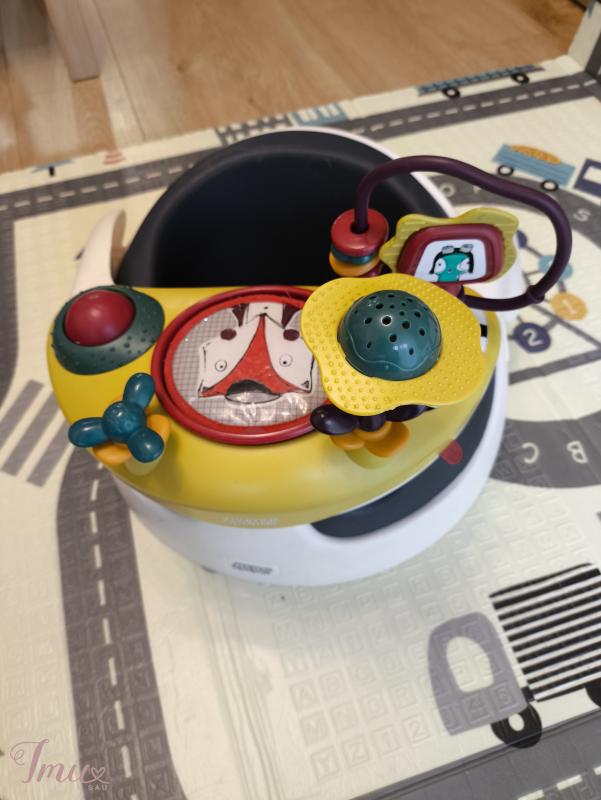 Mamas and Papas Baby Snug and Activity Tray Dėvėta. Paviršius pabraižytas, gale ilenkimas. Žaislo vienas iš lipduku apačioje pamestas. Galima kažką sugalvoti, laikosi. Bet jei stipriai patrauks nusiima. Visi žaislai veikia ir yra. Naudojimui netrukdo niekas. Užaugo du vaikai, užaugs dar keli :) Patogu kelionėse. Puikiai tinka primaitinimo pradžioje kai vaikas dar pats sunkiau sėdi, nes juodas įdėklas minkšta guma prilaiko puikiai kad nenukristų. Turėtų tilpti į LP express XL arba atsiimti Vilniuje Perkunkiemis