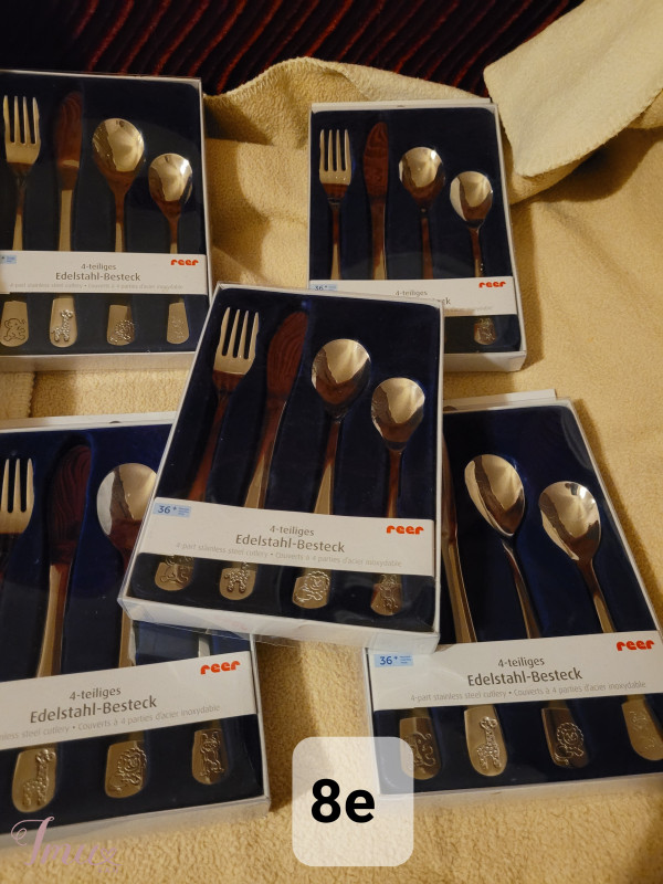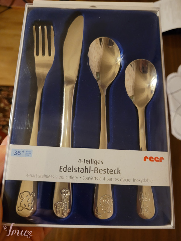 REER stalo įrankių rinkinys iš nerūdijančio plieno vaikams. Kas gi atsisakys valgyti, kai turi gražius savo įrankius - tokius kaip mamos ir tėčio. Ideali kaip dovana vaikams, įpakuota į dėžutę su aksomo įdėklu! Vaikiškų stalo įrankių rinkinys apima šakutę, šaukštą ir peilį, ir žinoma, deserto šaukštelį speciali ergonomiška, vaikams pritaikyta įrankių forma ypač saugūs vaikiški įrankiai papuošti smagiais gyvūnų piešinukais pagaminti iš poliruoto nerūdijančio plieno 18/0