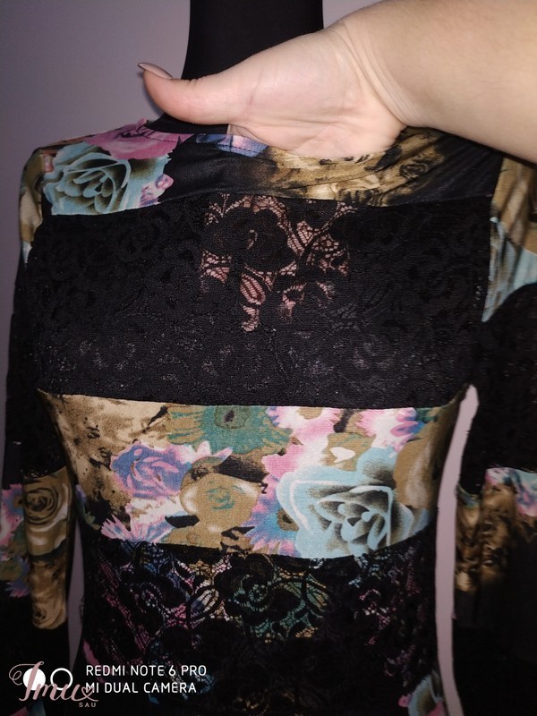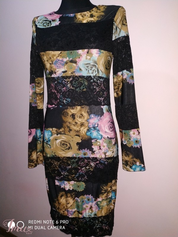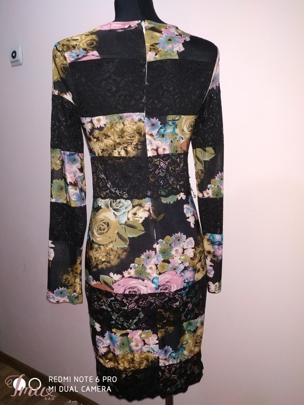 Krūtinė 95-98 cm., liemuo 75-80 cm., klubai 98-100 cm., rankovės ilgis nuo peties siūlės 64 cm., pečių plotis 37 cm., visas ilgis 101 cm.