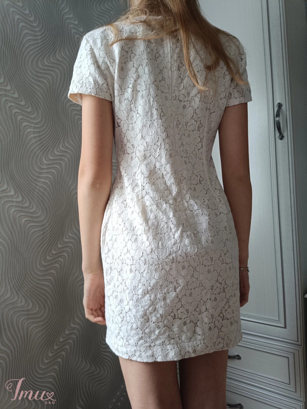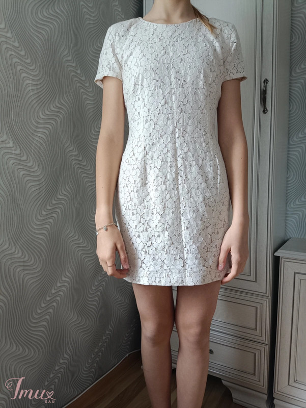 Kreminės spalvos suknelė. Nuotraukoje ant S dydžio merginos. Etiketėje M dydis, bet gal labiau S tiktų.