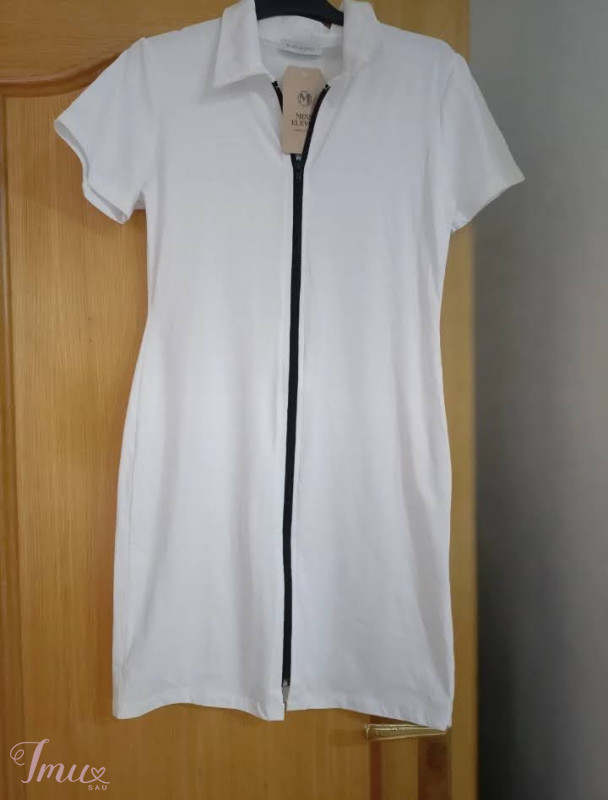 Nauja suknelė su trumpomis rankovėmis prigludusi su užtrauktuku. Priedų dirželį