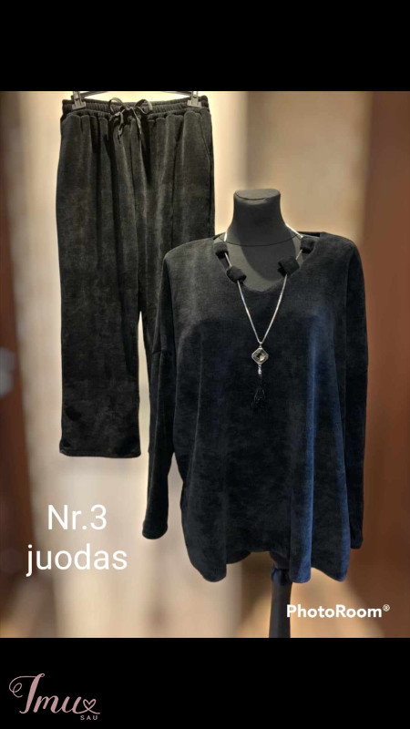 140 APIMČIAI ITALIŠKO VELIŪRO (SU RUOŽIUKAIS). DIDELIO DYDŽIO KOSTIUMĖLIS. SU KAKLO PAPUOŠALU !!! (norint galima nusisegti). ✅️KAINA 37 EUR. ... ✅️IŠMATAVIMAI : Ilgis bliuzono – 74. Krūtinė – 150. Apačia bliuzono – 150. Kelnių ilgis – 103. Klubai – 146. Liemens guma – 90-140. Išmatavimai pačio kostiumėlio didesni, bet medžiaga nesitemps, tai Jusų apimtis turi buti apie 140 cm kad turėtų kiek laisvumo. ... Spalva juoda. Yra ir kitokių spalvų, jei domins klauskit, atsiusiu foto. Rankovė nuo kaklo matuota, nes nestatytos per pečius - 76. (Jei per ilgos užsilenkia kaip mankietukai pasidaro), Kelnės plačios, nesiaurintos. Džemperiuko šonuose apačioje yra skeltukai.